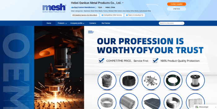Qunkun se posiciona como un proveedor versátil y orientado al cliente, que tiende puentes entre los servicios de fabricación y comercio. Mantienen una sólida reputación por prestar servicio a pequeñas y medianas empresas (pymes) internacionales que pueden necesitar contenedores mixtos con diferentes productos de alambre. Su gama de productos es muy amplia y abarca desde gaviones pesados para la construcción hasta mallas decorativas finas para uso arquitectónico.